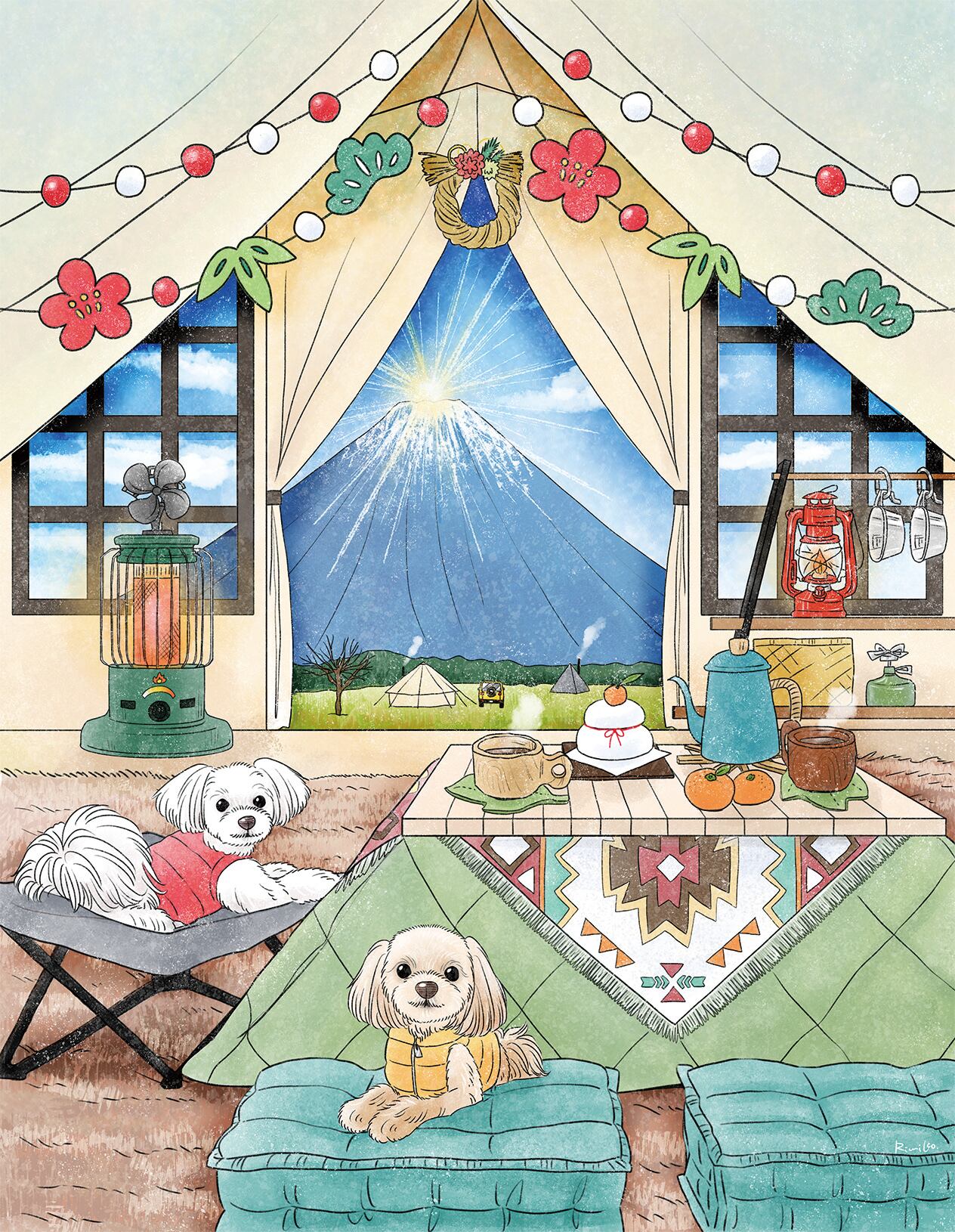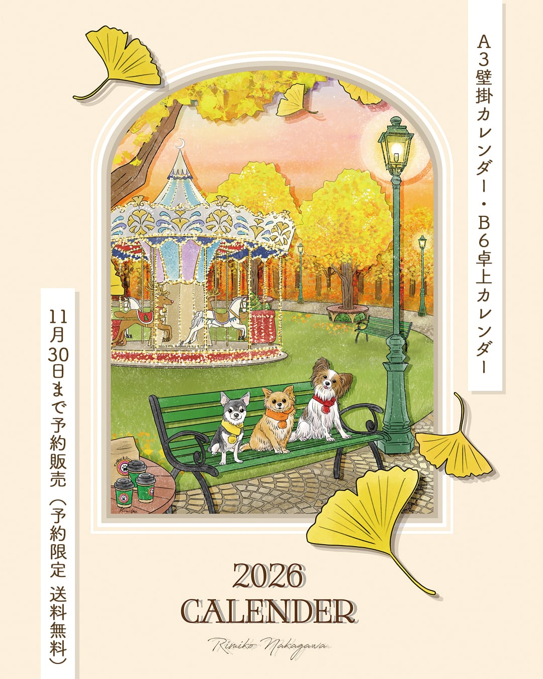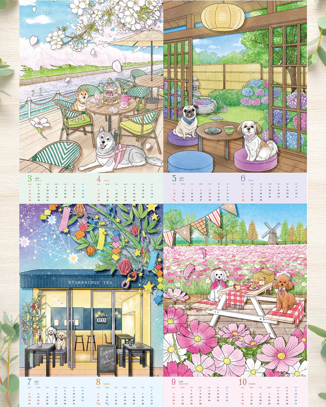 さまざまな季節や場所で飼い主さんとティータイムを楽しむワンちゃん達を描いた作品シリーズがカレンダーになりました!
