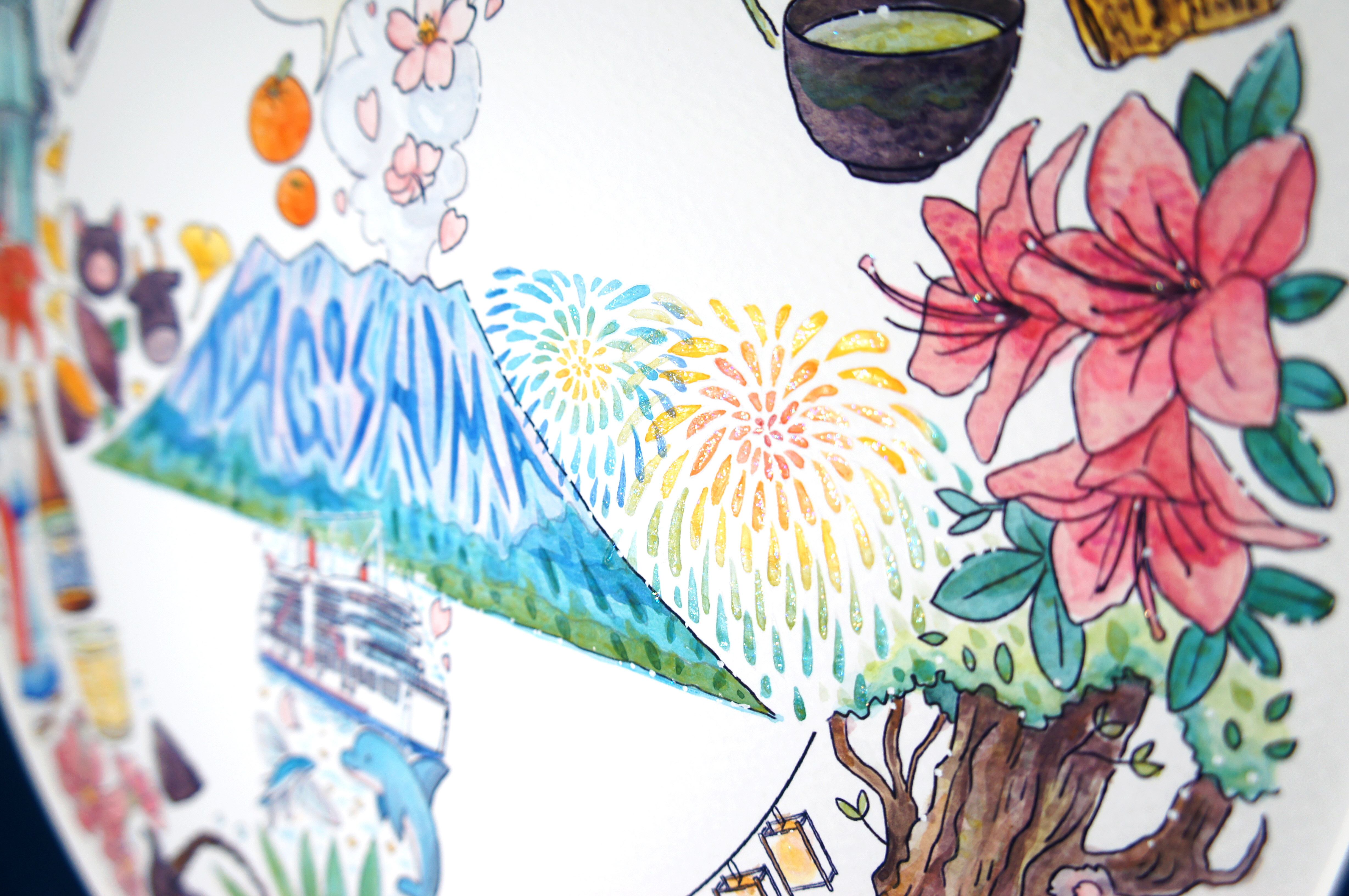 鹿児島県民には特別な思い入れのある島津家の家紋「丸に十字」をモチーフに、四季の移り変わりや思い出を丁寧に表現しました。